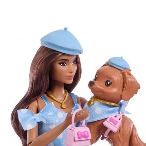 Barbie Twinning Looks Morena con Perro¡Diviértete el doble con Barbie Twinning Looks! Cada muñeca Barbie viene acompañada de una adorable mascota con un conjunto a juego.¡La muñeca Barbie y su perrito van coordinados con adorables lunares azules! Los lazos de las mangas de su vestido complementan a la perfección el lazo del pañuelo que lleva su perrito.Por suerte, ¡sus accesorios también vienen en conjuntos de dos! Complementa a estas dos muñecas con boinas azules a juego, collares dorados y bolsos rosas a conjunto.¡Los botines azul pastel de la muñeca Barbie también añaden otra capa de detalles a juego! Además, añade un accesorio a su perrito con un collar y una correa rosas para divertirse aún más vistiendo a conjunto.¡Barbie tiene las articulaciones flexibles !Incluye 1 muñeca Barbie, 1 perrito y 8 accesorios.Edad recomendada: + 3 años.