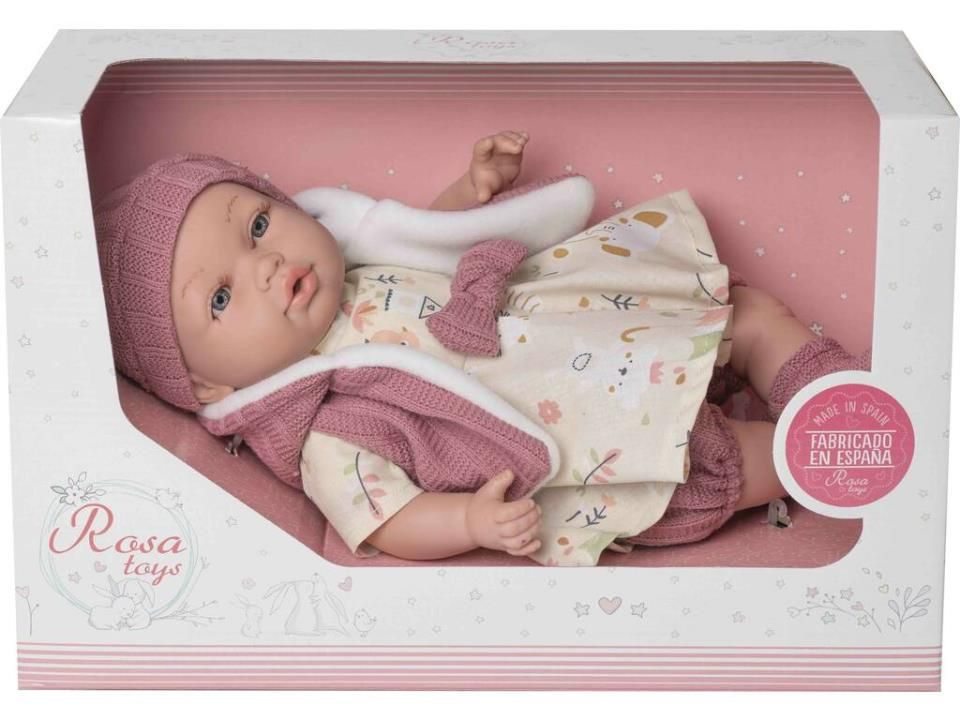 Muñeca bebé recién nacida Daniela 40 cm con ojos claros de recién nacida, cabeza y extremidades de suave vinilo detallado, cuerpo de material blandito, mecanismo que activa 36 sonidos de bebés diferentes, vestido beige con estampado especial, pantalón granate, gorro a juego, chupete blanco con cadena y más detalles geniales.Edad recomendada: + 2 años.