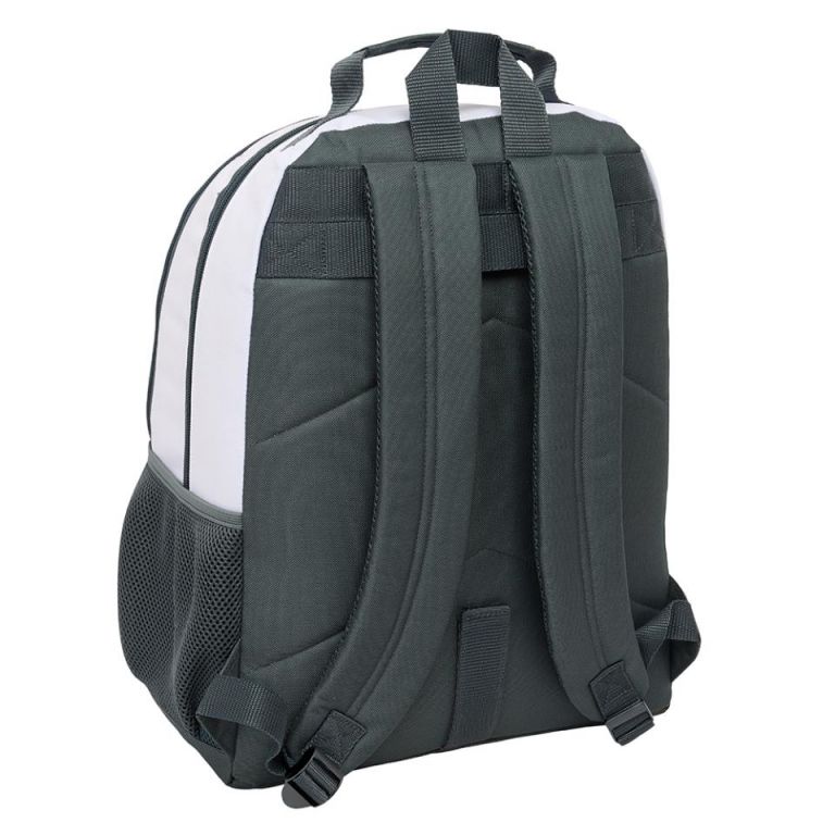 MOCHILA DOBLE ADAPT.CARRO REAL MADRID EQUIP.Adaptable a Carro Portamochilas.Bolsillo lateral portabotellas.Con dos compartimentos grandes.Doble tirador en cremalleras principales para facilitar su apertura.Bolsillo frontal de gran formato.320x160x420 mm ; 21.5 L