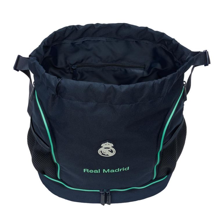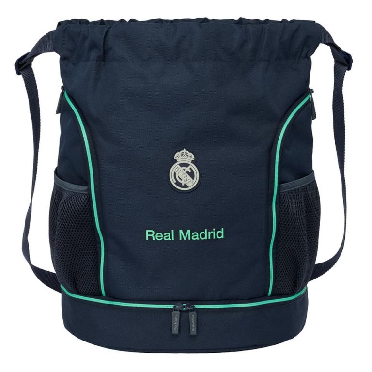 SACO MOCHILA REAL MADRID 2ª EQUIPACIONBolsillo interior con cremallera.Bolsillos laterales de red portabotellas.Compartimento inferior con cremallera de apertura en 2 direcciones para facilitar el acceso.Bolsillos laterales con cremallera.Hombreras de cinta ajustables.340x150x430 mm ; 21.93 L