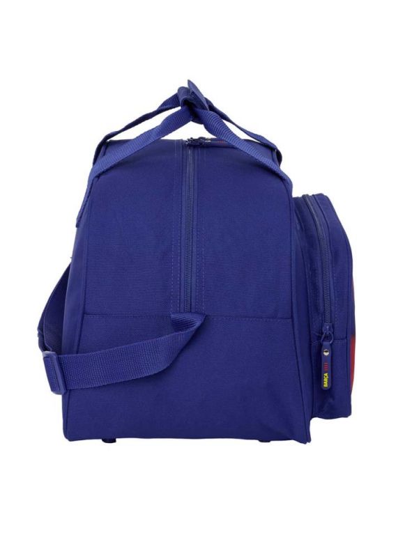 BOLSA DEPORTE F.C.BARCELONA 1ª EQUIP. Bolsillo frontal de gran formato.Bandolera ajustable.Asa de mano forrada en la parte superior.Doble tirador en cremallera principal para facilitar su apertura.Tacos de protección en la base.Fondo interior semirígido extraible.400x230x240 mm ; 22 L