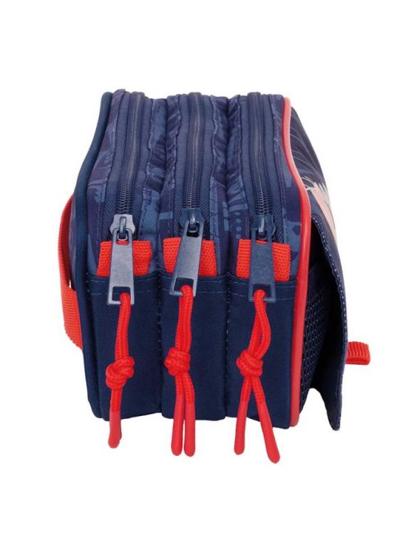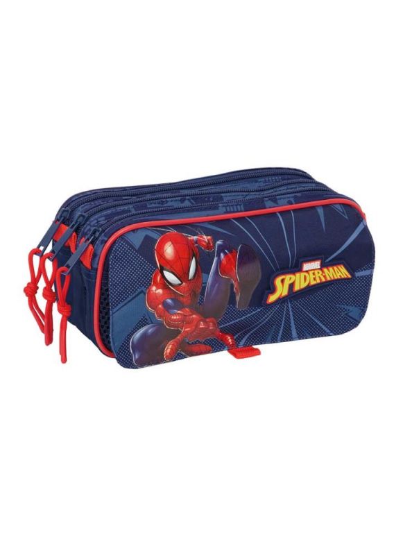 PORTATODO TRIPLE BIG SPIDER-MAN.Con tres compartimentos separados con cremalleras.Bolsillo frontal con cremallera.Cinta trasera adaptable a carro portamochilas.215x80x100 mm ; 1.72 L.