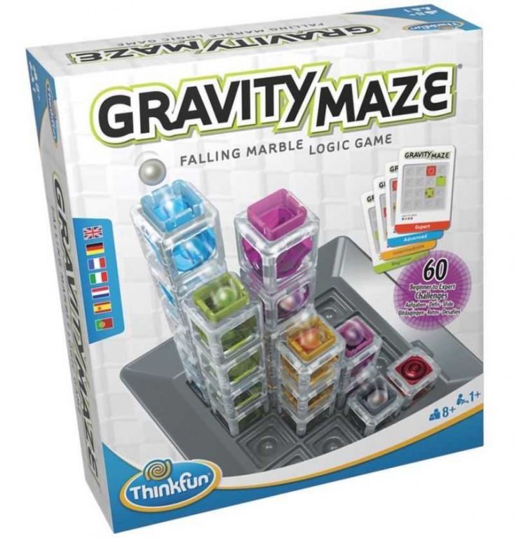 Juego de Mesa Gravity Maze Laberinto lógico accionado por la ley de la gravedad pondrá seguro a prueba tus habilidades de razonamiento y percepción visual y espacial. Sus torres translúcidas de colores pueden formar estructuras muy bonitas pero, para cada reto, tendrás que pensar concienzudamente cómo colocarlas para construir un camino por el que descienda la canica hasta el objetivo. dispones de un montón de retos retos, subiendo en dificultad, te harán pasar un entretenido rato de construcción creativa a la vez que gestionas el laberinto en tu mente.Edad recomendada: + 8 años.