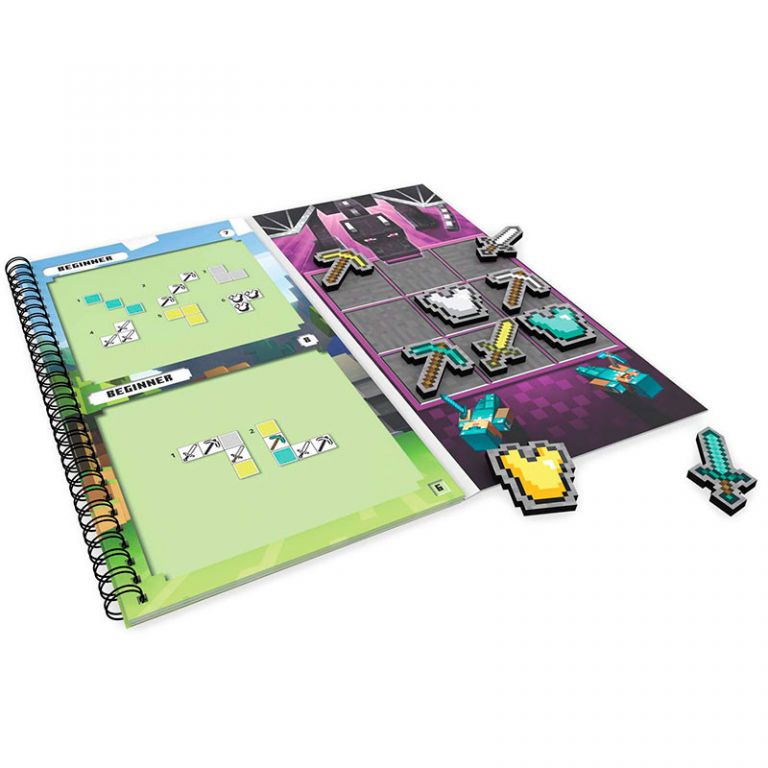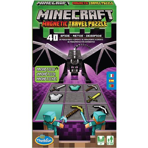 El dragón Ender está tratando de evitar que viajes por los mundos de Minecraft colocando 40 desafíos cada vez más difíciles en tu camino.JUEGO MAGNÉTICO DE RAZONAMIENTO DEDUCTIVOResuelve los desafíos y avanza en tu viaje usando tu arma más poderosa: ¡TU CEREBRO! En este juego alucinante de razonamiento deductivo, los jugadores usan pistas visuales positivas y negativas para colocar armas y armaduras magnéticas de Minecraft en la mesa de artesanía en la disposición correcta. Cuando su arreglo incluye todos los patrones de pistas del desafío, ¡USTED GANA!CONTENIDO:9 artículos magnéticos de Minecraft.Folleto de desafíos que contiene 40 desafíos y soluciones para principiantes y expertos.instrucciones en varios idiomas, incluido el español.Edad recomendada: + 8 años.