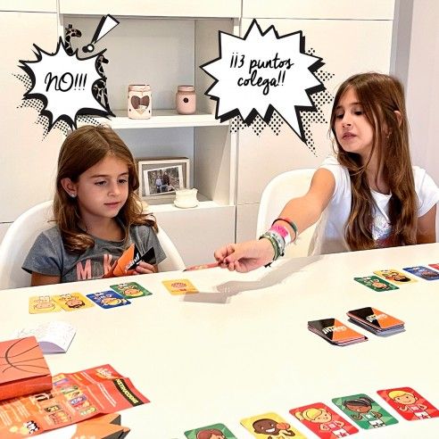 Juego de cartas de basket en el que para ganar los jugadores deberán anotar 21 puntos. las reglas sencillas convierten esta baraja en un gran pasatiempo y un entretenido juego de mesa de su deporte preferido. las cartas de acciones específicas simulan las reglas del baloncesto para hacerlo todavía más divertido, se deben usar con astucia para hacerse con la victoria. la baraja incluye comodines borrables para personalizarlos con reglas propias y divertirse aún más. la baraja suma 90 cartas: 8 cartas de jugador de 4 colores. 4 canastas. 24 pelotas para sumar puntos. 4 cambios. 6 cinco faltas personales. 4 tapones. 4 faltas técnicas. 4 tiempo muerto. 8 24 segundos. Incluye 2 cartas comodines para poner reglas propias. una experiencia emocionante y divertida para todo el mundo. es ideal para jugar con la familia y los amigos para intentar ser la persona en ganar este emocionante partido.Edad recomendada: + 6 años.