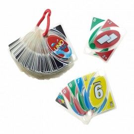 Juego de mesa que incluye 108 cartas resistentes al agua + un mosquetón para transportarlas cómodamente.La versión resistente al agua del clásico juego de cartas unoPara jugar entre 2 y 10 jugadores, que se pueden desafiar individualmente o por equipos.El objetivo es ser el primero en quedarse sin cartas y gana el primer equipo o jugador en llegar a 500 puntos.Cuando te quede una sola carta, no te olvides de gritar uno.Edad recomendada: + 6 años.