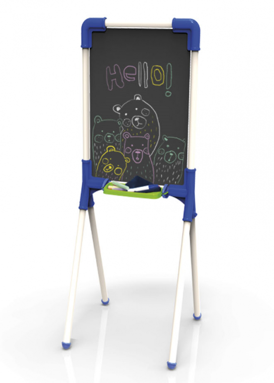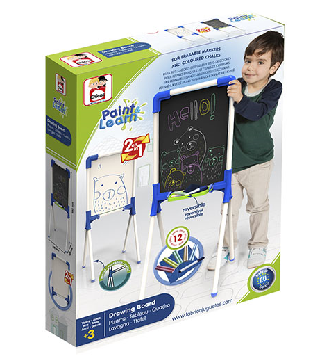 Pizarra infantil de dos caras: tizas y rotuladores. Gracias a su reducido tamaño es perfecta para niños y niñas a partir de 3 años. Se incluyen tizas de colores, un rotulador borrable y un paño para limpiarla pizarra. Los juegos creativos como la Pizarra Junior ayudan a los más pequeños a hacer volar su imaginación y a fomentar su creatividad. Recomendado a partir de 36 meses