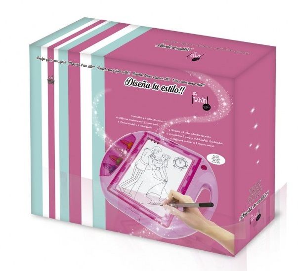 Se trata de un estudio de moda para fomentar la creatividad y las habilidades manuales. Es una tablea luminosa de dibujo ideal para crear diferentes estilos y conjuntos. Diviértete calcando las modelitos de las muñecas y decorándolas con diferentes colores.Necesita 3 pilas AA (no incluidas).Edad recomendada: + 6 años.