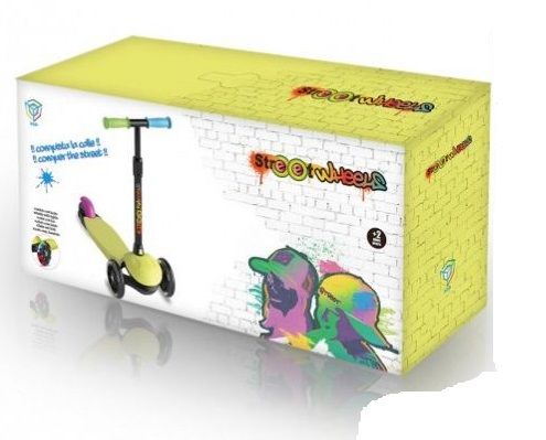 Patinete de 3 ruedas de diseño propio. Incluye: Barra de dirección de aluminio y ajustable en altura. Fácil montaje y desmontaje con un solo clic Plegable y fácil de transportar a cualquier parte Puños antideslizantes con punta redondeada (para evitar golpes) Plataforma con alta resistencia contra golpes e impactos Ruedas con luces de led Freno trasero que no se calienta ni desgasta la rueda Peso 1,9 kg Dimensiones 68 cm alto, 53 cm largo, 23 cm ancho.Edad recomendada: + 2 años.