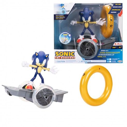 El Radio control Sonic hará las delicias de los fanáticos de Sonic! Este emocionante juguete te permite recrear toda la acción y velocidad de los juegos en la comodidad de tu hogar. Con Sonic RC, podrás experimentar la velocidad extrema mientras controlas al Sonic más rápido de la historia. ¡Prepárate para emocionantes carreras y aventuras llenas de adrenalina! Una de las características destacadas de Sonic RC es su modo Turbo. Al activarlo, el juguete gira a toda velocidad y sus ruedas se iluminan, creando un efecto impresionante que te hará sentir como si estuvieras dentro del juego. ¡La diversión está asegurada! El controlador de Sonic RC presenta el icónico diseño de anillo de Sonic, lo que le brinda un aspecto auténtico y te sumerge por completo en el mundo de Sonic. Con controles fáciles de usar, podrás manejar a Sonic de manera precisa y realizar maniobras increíbles. Además, la figura de Sonic se puede desmontar, lo que te permite recrear escenas emblemáticas de los juegos o incluso crear tus propias historias, de Jakks.