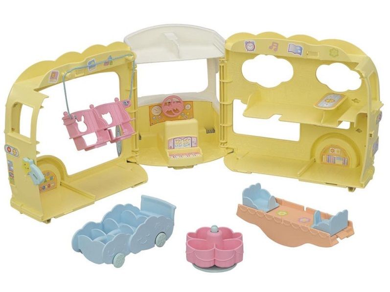 ¡La aventura de aprender, comienza al salir de casa! En el autobús del arcoíris, los bebés de la Aldea Sylvanian comienzan el día todos juntos. El set incluye vehículo, asientos rosas, naranjas, azules y trenecito. Las figuras y mobiliario se venden por separado.Edad recomendada: + 3 años.