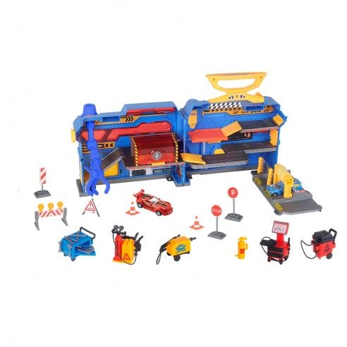 Garaje y maletín de carreras para poder jugar y transportar tus juguetes a todas partes. Incluye luces y sonidos. Edad recomendada: + 3 años.
