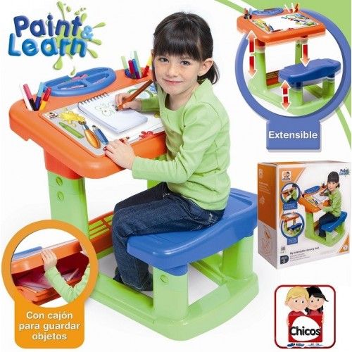 Este pupitre, con una amplia superficie de trabajo, crece a medida que el niño o niña también lo hace. Es extensible en altura para adaptarlo con facilidad al crecimiento del joven artista. Incluye cajón guarda objetos , medidas : 575x755x585 mmFabricado con plástico de gran resistencia y durabilidad, incorpora un cajón guarda objetos baja la amplia superficie de trabajo. Materiales de dibujo no incluidos.