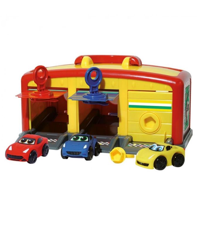 Garaje con 3 coches deportivos de goma en diferentes colores. El garaje tiene 3 puertas de los diferentes colores de los coches: rojo, amarillo y azul. Incluye 3 llaves de estos 3 colores, pero con diferente forma cada una. Consigue encontrar la llave que corresponde a cada puerta y saca y mete los coches. Se trata de un juego muy completo que ayuda a los más pequeños a relacionar colores y formas, así como a mejorar la coordinación ojo mano y la destreza manual. Edad recomendada: + 18 meses.