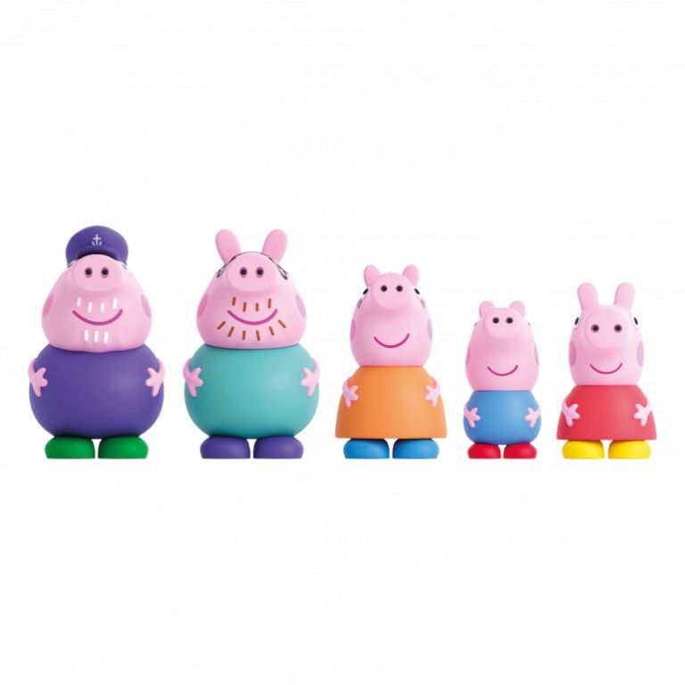 Pack de 5 figuras para el baño. Incluye los personajes de Peppa, George, Mama pig, Papa pig y Abuelo Pig. Las figuras tienen un tamaño entre 7 y 10cm. Son de goma y poseen una apertura para que salga el agua y el aire y evitar que aparezca moho.Edad recomendada: + 12 meses.