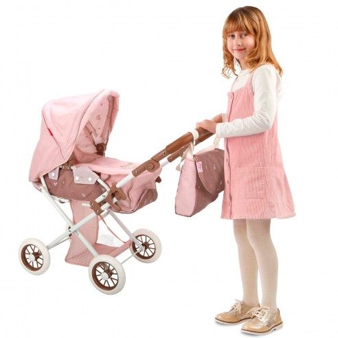 COCHE CAPOTA BEAR 34X67X58 C/BOLSO 3 EN 1 MUÑECAS ARIAS¡Los colores rosa y marrón de este carrito de paseo son muy dulces y elegantes! Para garantizar la larga duración del producto se han utilizado para su elaboración sólo tejidos y materiales de alta calidad. Su estructura metálica es plegable para así poder llevarla siempre contigo ocupando muy poco espacio. En la parte inferior dispone de una amplia bandeja. Incluye un bolso a juego para guardar todos los accesorios de tus muñecas.Altura de manillar regulable: 33-63 cm.Edad recomendada: + 3 años.