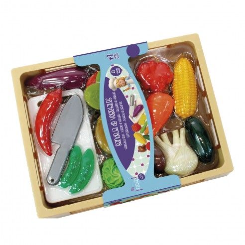 La Bandeja de Verduras de Juguete con imitación de madera es perfecta para el juego simbólico. Incluye una variedad de verduras de colores llamativos, ideales para fomentar la creatividad y el aprendizaje sobre alimentación. Un producto atractivo y seguro para niños.Edad recomendada: + 2 años.