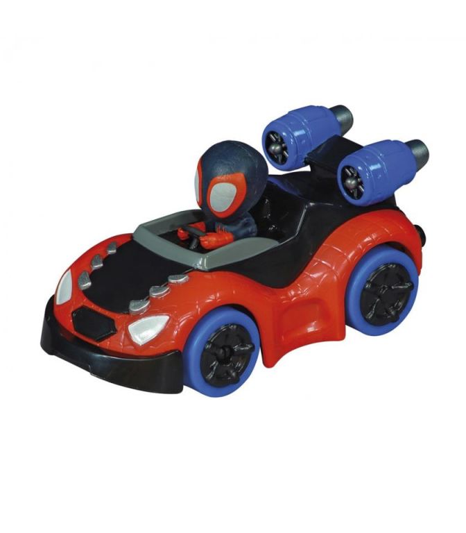 Spiderman entra en acción en este circuito Carrera First de temática Spiderman de nada menos que 2,4 metros de largo. En una pista vemos a Spidey, el coche rojo y azul, compitiendo contra Spin, el coche negro y rojo. Deja que tus superhéroes Spiderman compitan y que gane el más rápido.Necesita pilas tipo C no incluidas.Edad recomendada: + 3 años.