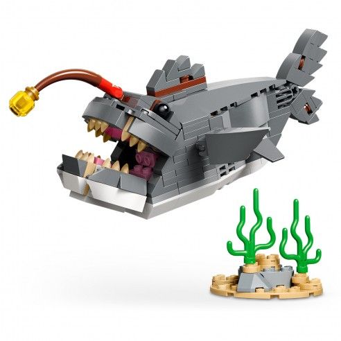 Este impresionante set basado en animales marinos ofrece a los peques 3 opciones deconstrucción diferentes con los mismos ladrillos. Pueden construir un tiburón articulado y colocarlo en un soporte con un cofre del tesoro y un cangrejo. Después, todo esto lo convertirán en un pez abisal sobre un soporte con plantas marinas o en una manta raya articulada sobre un soporte con una concha de almeja. Una vez terminadas las sesiones de construcción y juego, cada modelo se puede exponer en una estantería o un escritorio. Contiene 379 piezas.Edad recomendada: + 8 años.