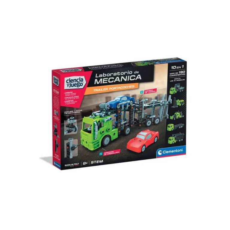 Descubre un increíble set de construcción para crear un camión transportador de coches con espacio para múltiples vehículos.Este set permite construir un camión que ofrece un alto nivel de jugabilidad. Incluye dos coches, añadiendo más diversión al juego. Podrás estudiar la mecánica del camión transportador de coches a través de sus diversos movimientos posibles: una rampa superior que se baja, un sistema de dirección funcional y portones traseros que se reclinan.Aprendizaje y DesarrolloAl ensamblar los diferentes componentes, los niños pueden poner a prueba sus ideas, experimentar y comprobar por sí mismos si las soluciones que encuentran son correctas o si pueden mejorar el diseño. Es una excelente manera de aprender sobre mecánica y construcción de forma práctica y entretenida. Este set ha sido fabricado en Italia.Edad recomendada: + 8 años.