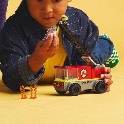 ¡Vive heroicas aventuras con tu pequeño héroe cotidiano a bordo del juguete LEGO City Camión de Bomberos con Escalera! Este camión de bomberos clásico cuenta con cabina del conductor y escalera elevable con extintor. El set incluye también 2 llamas LEGO oscilantes, un extintor de mano y 2 minifiguras de bomberos para imaginar historias.Edad recomendada: + 4 anos.