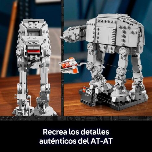 Lleva la tensión de la batalla de Hoth a tu hogar con este dinámico set de construcción para adultos de un AT-AT. Recrea con fidelidad los detalles del emblemático caminante AT-AT, desplegado por las fuerzas terrestres del Imperio Galáctico. Agrega un speeder de nieve de la Alianza Rebelde en vuelo, maniobrando hábilmente para rodear las patas del AT-AT con su cable de remolque, igual que en la emocionante escena de Star Wars: El Imperio Contraataca. El set contiene 525 piezas.Edad recomendada: + 18 años.