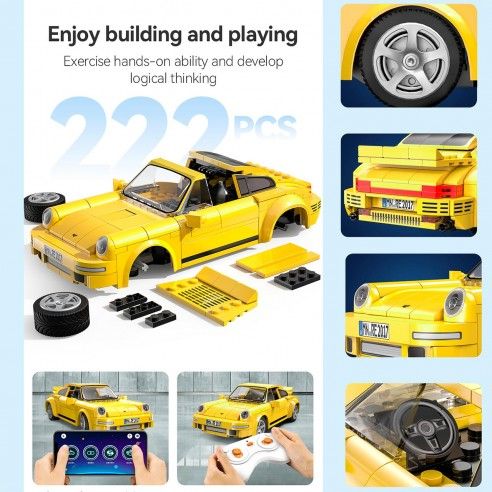 Replica licenciada de RUF en color amarillo. El vehículo puede ser controlado por el control remoto de 2.4GHZ y la aplicación Bluetooth, disponible en versiones Android e IOS. Disfruta de tus turnos con los 4 modos de conducción que te ofrece la App de CADA (giroscopio, scratch de programación, control desde tu móvil o editar tu propia ruta).Edad recomendada: + 8 años.